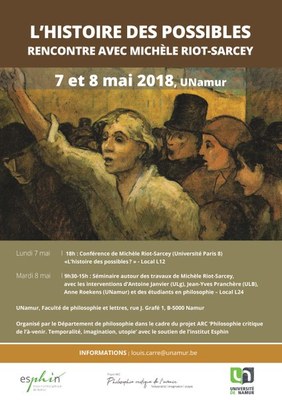 Lundi 7 mai à 18h : conférence de Michèle Riot-Sarcey sur le thème : "L'histoire des possibles" (Université de Namur, salle L12).