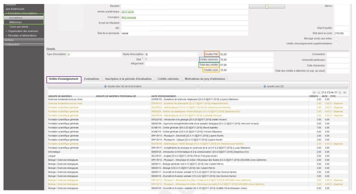 1.3. Onglet « Unités d’enseignement »