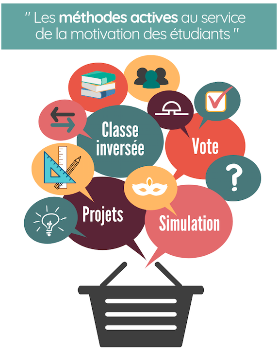 Les méthodes actives qui mises en avant étaient l'approche par projet, la simulation, la classe inversée et l'utilisation de systèmes de vote.
